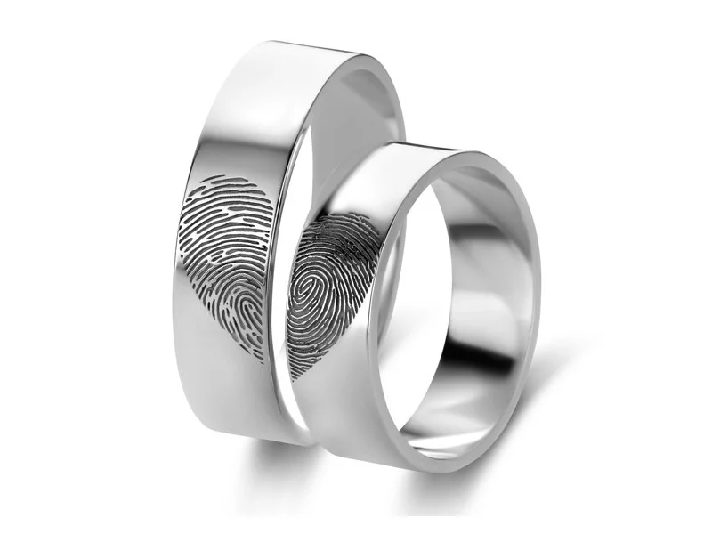 De vingerafdruk ringen zijn gemaakt van 925 sterling zilver. De breedte van de ringen is 6 mm.