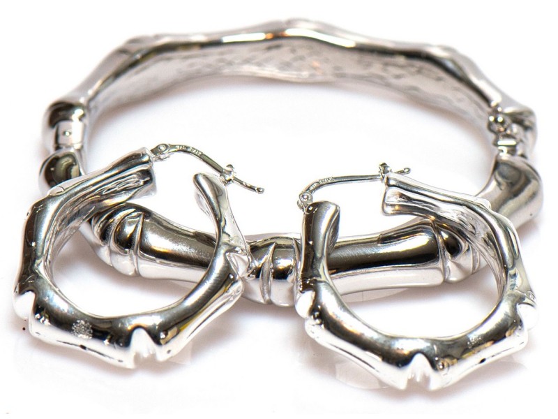 Bij ons koop je de mooiste Surinaamse sieraden, zoals deze zilveren Surinaamse bamboe armband met bijpassende bamboe oorbellen.