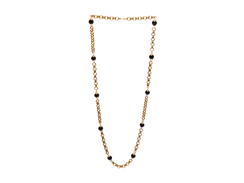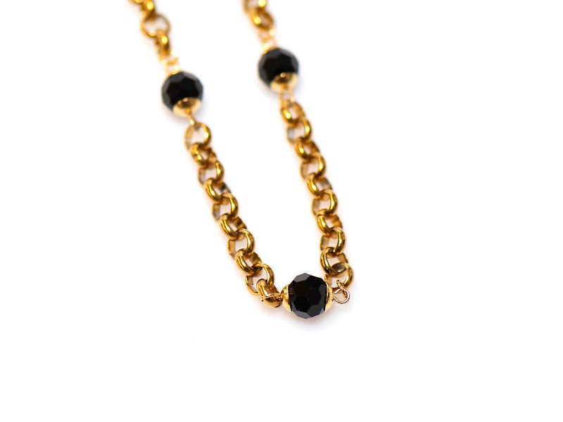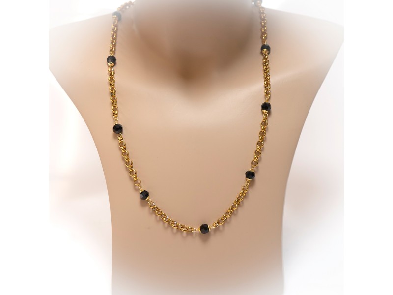 Bij ons koop je de mooiste Surinaamse sieraden in stainless steel, zoals deze goudkleurige boto ketting met zwarte ogri ai kralen.