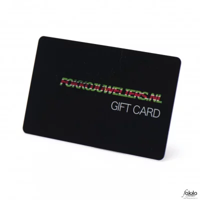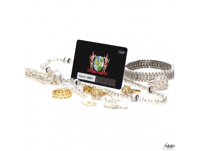 De FokkoJuweliers gift card wordt in een leuke cadeauverpakking bezorgd, zodat je iemand er direct mee kunt verblijden. De gift card is verkrijgbaar in verschillende waardes, vanaf €20 tot en met €300. Op de voorkant van de gift card is de Surinaamse vlag te zien. Op de achterkant is het wapen van Suriname te zien met daaronder een kraslaag met de gift card code die ingevoerd kan worden op onze website.