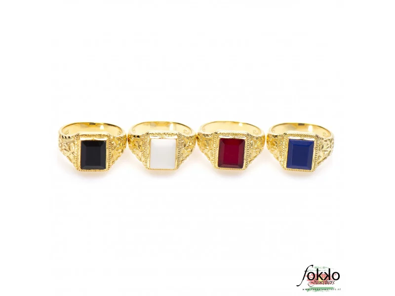 Deze vergulde Surinaamse ring met vierkante steen van Fokko Design heeft een stijlvol Surinaams design met een goede oog voor de details. Deze Surinaamse ring heeft een culturele betekenis.