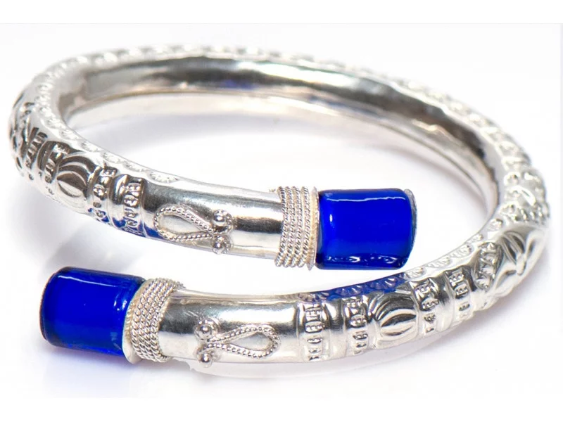 Bij ons koop je de mooiste Surinaamse sieraden, zoals deze Surinaamse boei met blauwe ingi boka kralen.
